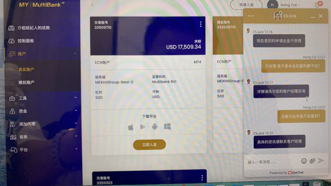 大通不给出金,本金加盈利17509.34美金,佣金1474.14美金至今未处理