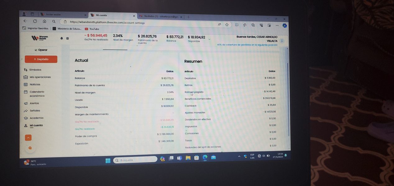 Soy de El Salvador y Me Estafaron, Inverti y al Principio iba bien Ganancias, luego lo Incitan a uno a Invertir y se Obtuvieron Ganancias, pero luego Creeria q esta Plataforma de Warren La Manipilan porque de la noche a la manana se Cae e Margen............y le meten a uno una presion para No Perder el Dinero......que uno Cae, y le cambian a uno de Broker cuando uno ya se les pone al brinco; y de las Ganancias Nunca dejan Retirar.................Es una bonita Inversion la que hice. Favor No Caigan con estas Ratas. Carlos Alcala, Jose Tellez, Javier Hainz.............. Es mas an tenido el Descaro de llamar de nuevo y un tal Jose Gonzalez que tiene un Nivel mas alto(Estafa quizas) decir que me va ayudar a Recuperar lo Invertido,............y Que Creen..........la misma Tecnica Cobarde de Depositar.................