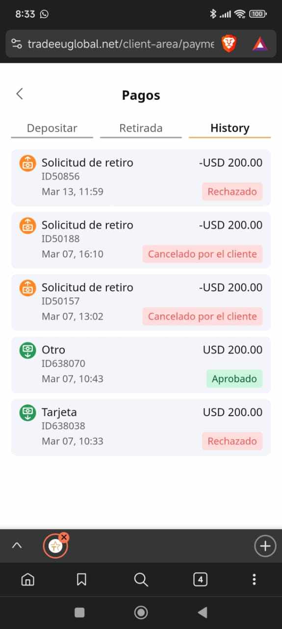 Vi publicidad de su pagina de muy buena referencia, caí en la trampa y cuando me llamaron para ayudarme con crear mi cuenta me convencí de lo buenos que pueden ser, resulta que ahora no me dan solución real para retirar mi dinero y solo me siguen pidiendo certificado de residencia, cosa que ya di. Intenté seguir siendo amable para ver si al menos por compasión me devuelven y nada, solo piden más y más papeles. Voy a denunciar y espero que todos los que estén en problemas con esta clase de páginas también lo hagan y así recuperar nuestro dinero lo antes posible.