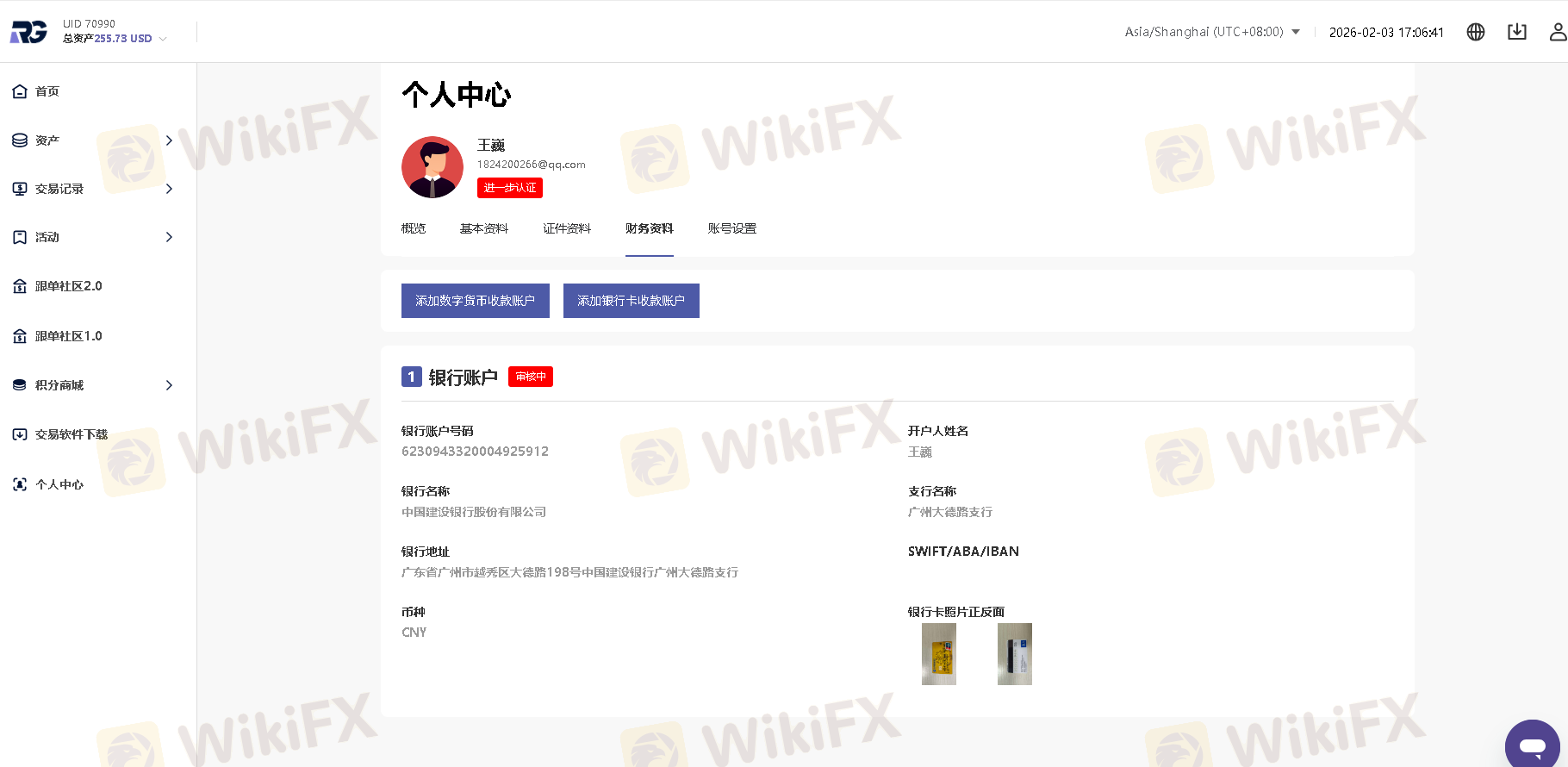 银行卡收款账户在2月3号通过的,客户已经于2月4号出金完成了。