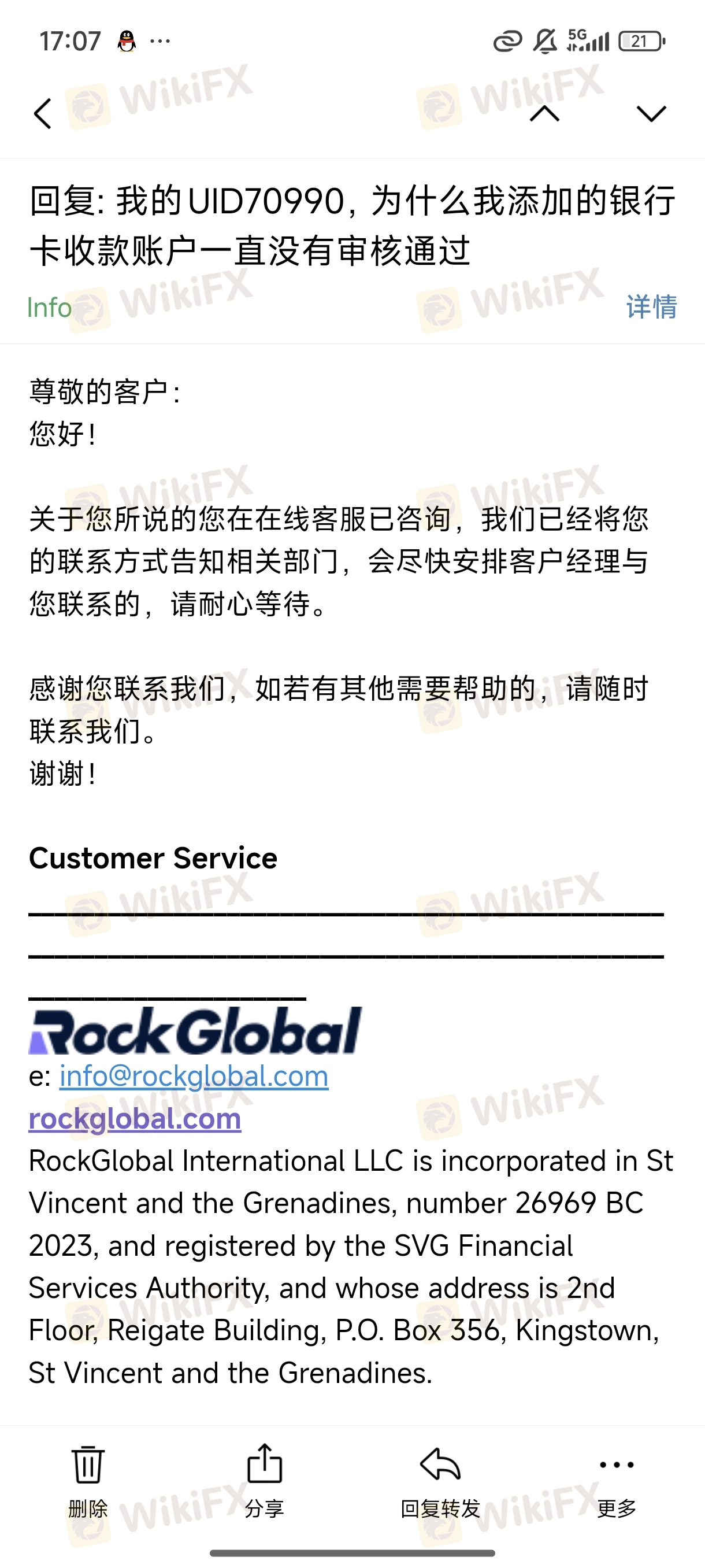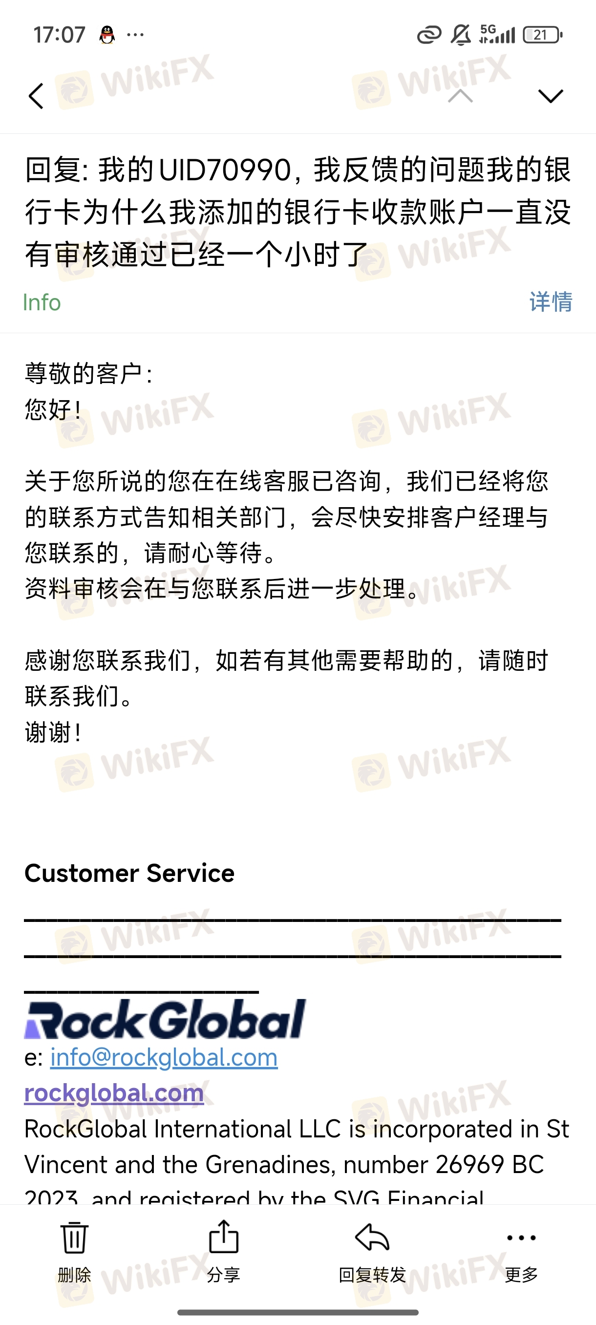 خدمة عملاء WikiFX