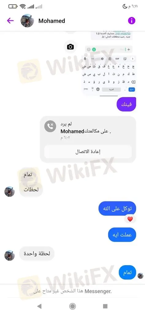 يقول المستثمر: تواصل معي شخص يدعى محمد المغربي من منصة deriv واقنعه بأنه يمكنه شراء usdt مقابل مبلغ قدره ١٥٠٠٠ جنيه مصري