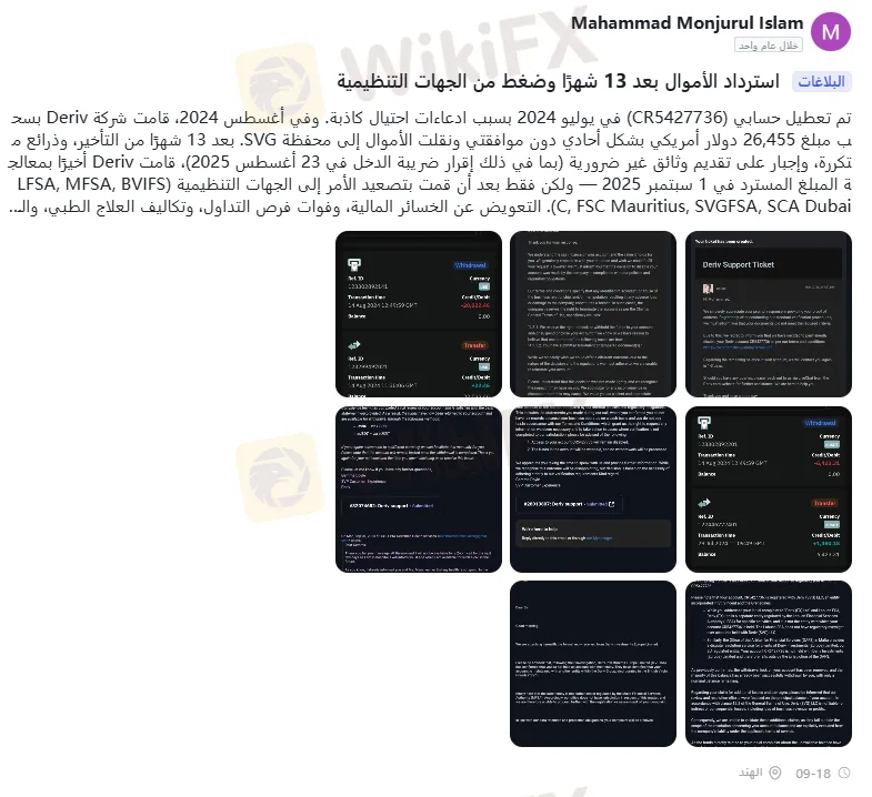 - في مراجعة Deriv على WikiFX/منتديات، أشار بعض المتداولين إلى انعدام الشفافية في الفروقات (spreads) أو الصفقات التي تمت بأسعار غير متوقعة.