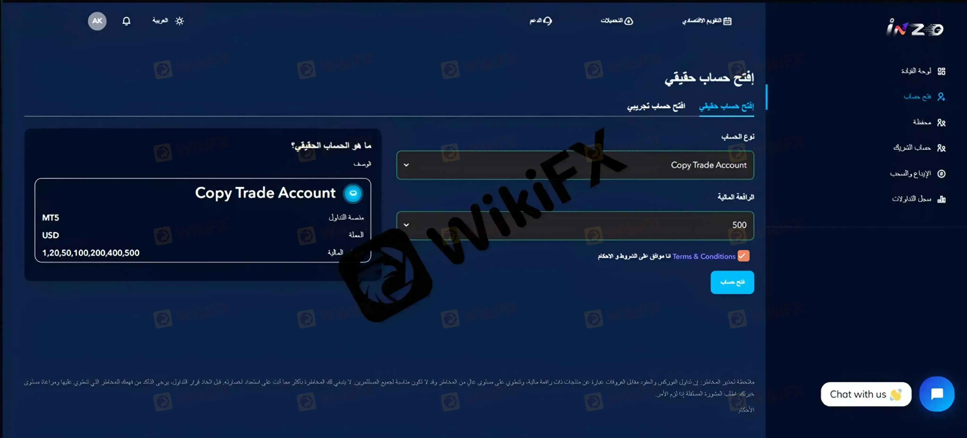 فتح حساب تداول لدى شركةINZO
