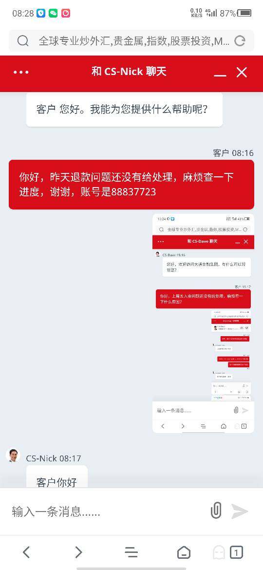在大通金融开户,账号是88837723,于2020年3月20日入金8000美金至今未到账,也不给退款。