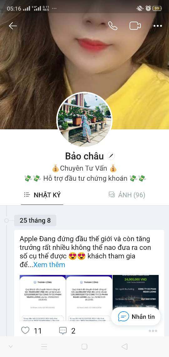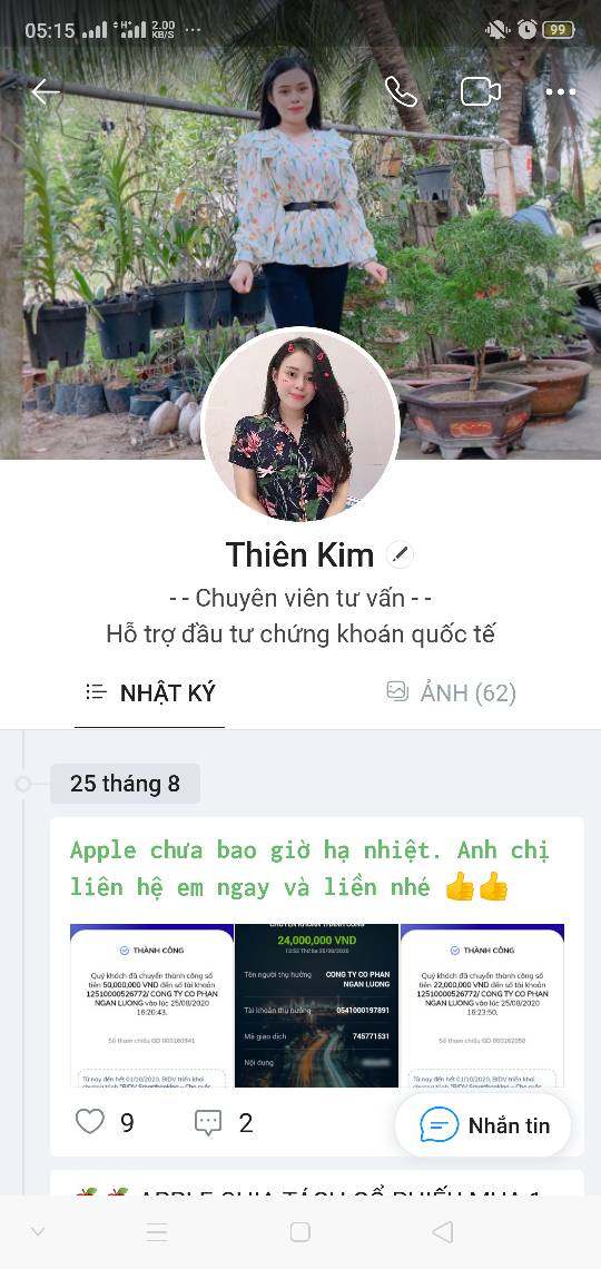 Cảnh báo mọi người nên tránh xa sàn này ra.Khi tôi yêu cầu lệnh rút tiền thì chúng nó đưa ra lý do là sàn bảo trì(có sàn nào bảo trì cả tuần ko).Thời gian bảo trì tôi vào kiểm tra tài khoản thì thấy trắng trơn(ko có bất cứ dữ liệu nào cả),chúng bảo sàn lỗi nên khoá tài khoản.Sau đó tôi yêu cầu kiểm tra thì kỹ thuật bảo đã gửi thông tin tài khoản cho sàn check,đến giờ này thì khoá luôn điện thoại và zalo liên lạc. Thời gian đến nay là gần 20 ngày xem như là tôi mất luôn tài khoản.Những khuôn mặt: