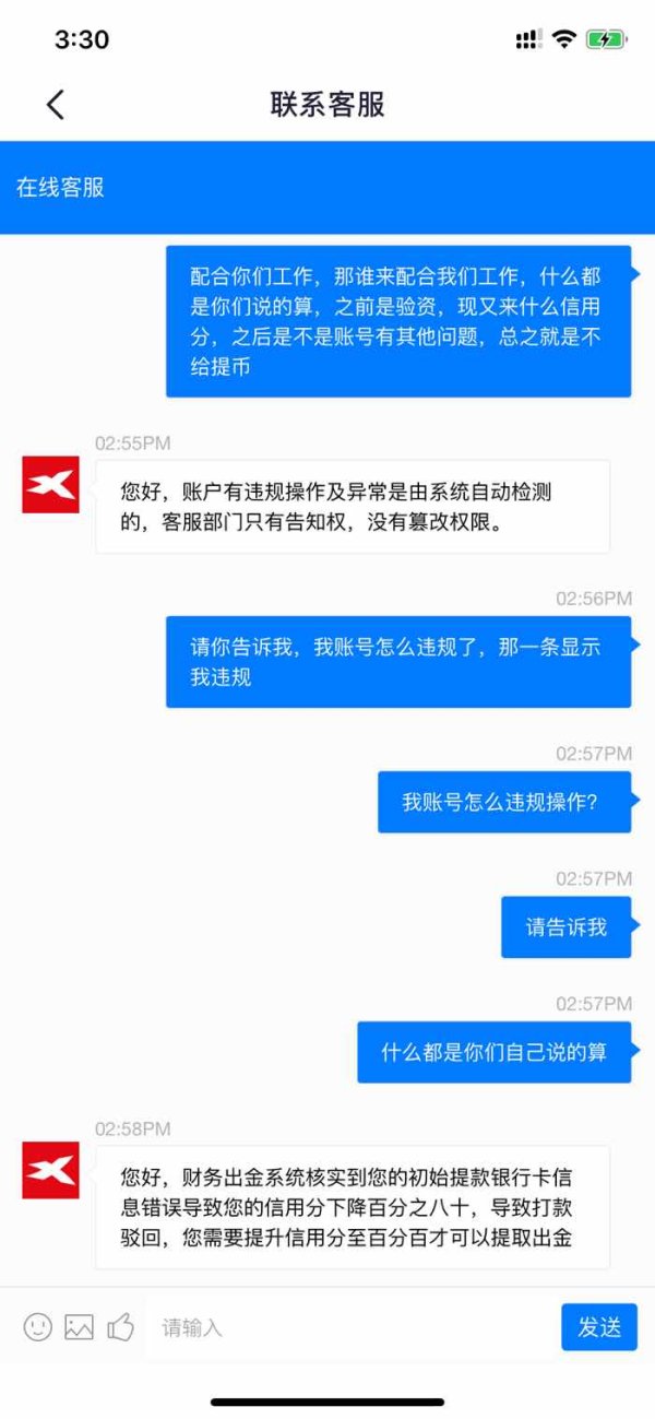 可以充币但不让提币,说银行卡信用分不够,不让提币,银行卡银行都没查我账号,XTB到知道了?什么都是XTB说的算