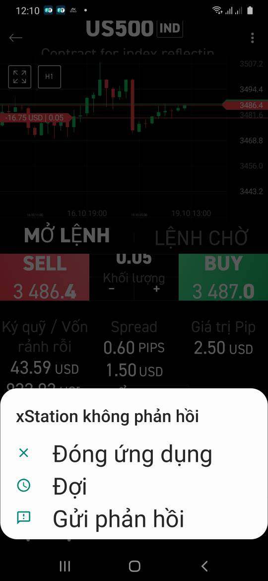 ứng dụng xstation bị đơ cứng , không đóng được lệnh, báo cáo ứng dụng xstation không phản hồi , đã 3 lần đều không được sàn giải quyết, có hình chụp làm bằng chứng