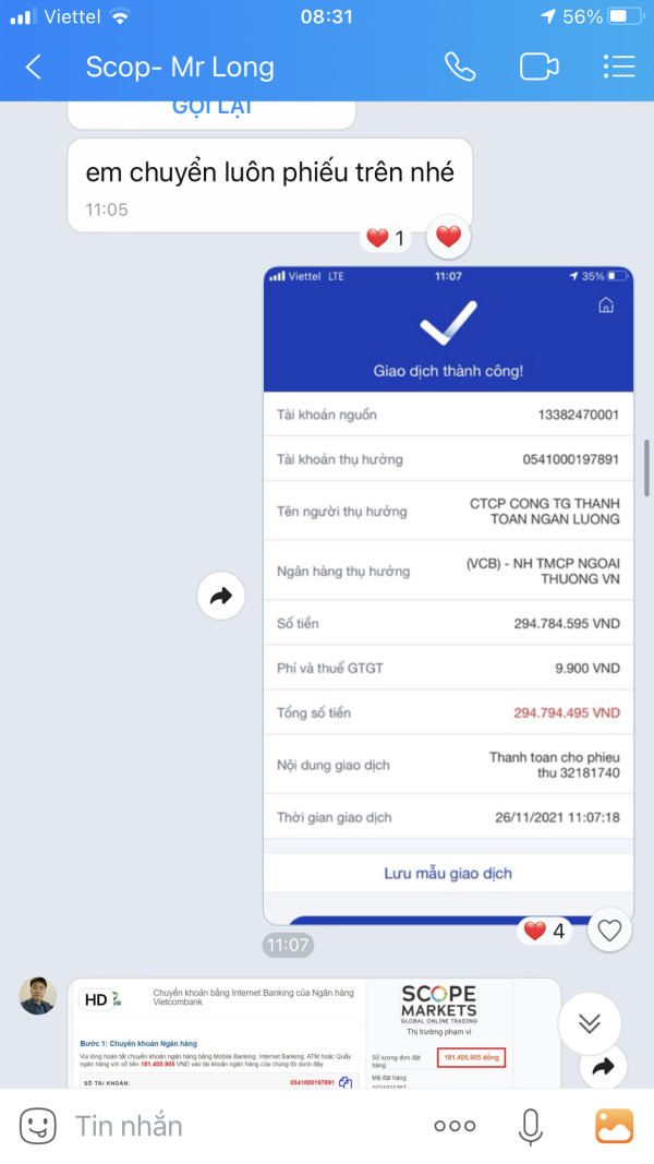 1. lần đầu hồi giữa T06/2021 sau khi nghe tư vấn của sale bên cty này, sau đó hỗ trợ giao dịch 1:1 ngày đầu có lợi nhuận cháy vào Tháng 7/2021 sau tầm gần 3 tuần với tổng số tiền nạp 37.000$ 2.Lần thứ 2 la 18/11 sau cả tháng cho tôi vào nhóm xem lệnh chuyên gia và các nđt giao dịch trên nhóm và hứa hẹn cam kết đt có lợi nhuận thì ngày và khi gặp sự cố bảo tôi nạp thêm để có suất bảo hiểm tk để back vốn cũ về, tôi nghe theo và kịch bản tiếp diễn, tổng số tiền nạp lên tới 110.000$ và cháy