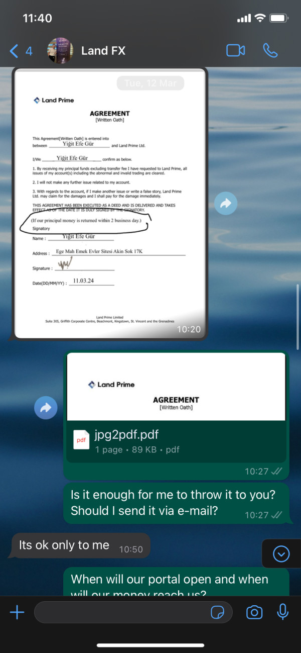 After waiting for a long time, like 1 month, for our withdrawal request through the company, they told us that we had made a mistake and that we could only withdraw our principal, not our profit. And they sent a document for this. And so I sent this document and forwarded it to them both via e-mail and WhatsApp, and they made it possible to withdraw money on our portal. Later, the support line at +63 927 574 0301 told me that if I write my TRC20 address in the bank transfer section and withdraw my money that way, my money will reach me faster. Withdrawals made via TRC20 arrive within the day. For bank transfer, the limit was a maximum of 5 business days. Even though 7 working days have passed today, our money still hasn't arrived! And again they do not answer us either via e-mail or WhatsApp! Even though they made us sign a document stating that they would pay us our principal, they did not pay us our money for 7 working days and we cannot reach them in any way!