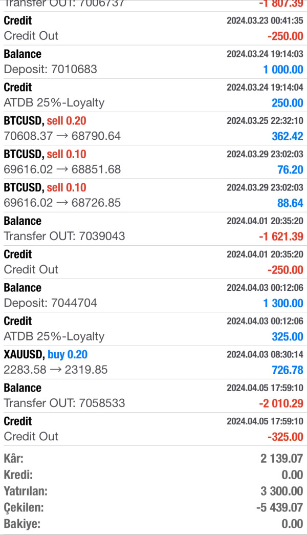 1300 dolar para gönderdim ve altın işlemimden ufak bir kar elde ettim ardından tüm bakiyemi çekme talebinde bulundum . Bu dolandırıcı kurum bana mail atıp elde ettiğim karı sildiklerini belirttiler 1300 dolarımı çekme talebinde bulunduğumda gönderdiler ama elde ettiğim karı kanıt olmadan benimle iletişime geçmeden sildiler. Bunu sürekli yazacağım bu kurumun nasıl bir dolandırıcı kurum olduğunu herkes görebilsin