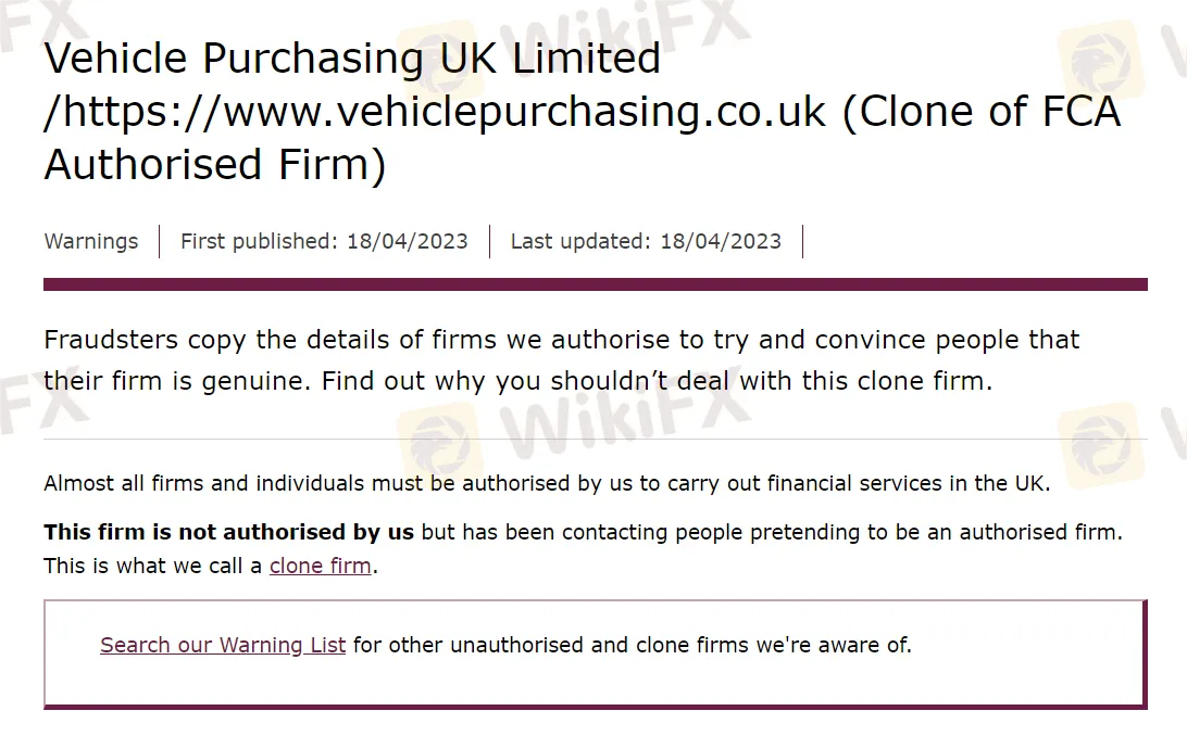 Vehicle Purchasing UK Limited (Klon einer von der FCA autorisierten Firma)