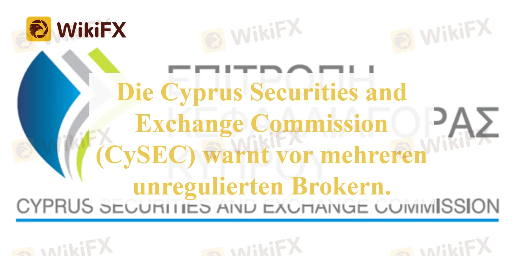 Die Cyprus Securities and Exchange Commission (CySEC) warnt vor mehreren unregulierten Brokern.