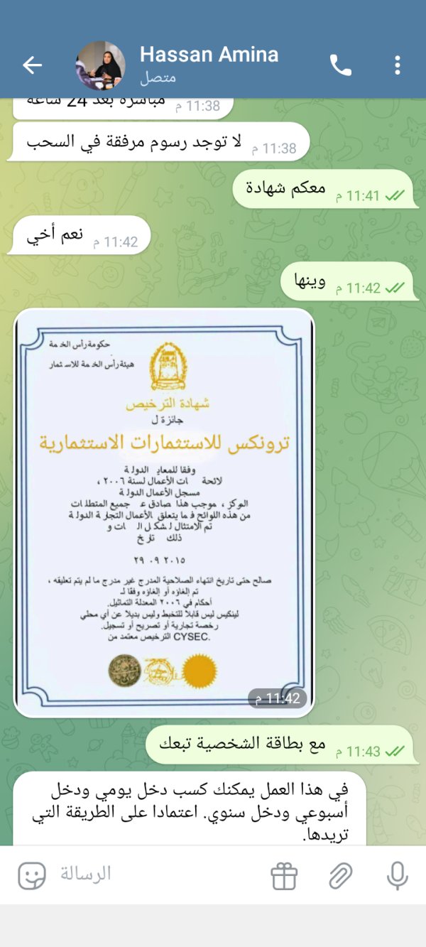 ادفع 10ريال دولار نتداول به وبعد 24ساعه أستلم أرباحك 1000ريال دولار وبعد 24ساعه سالت وين ارباحي قال ادفع رسوم 70ودفع ودفعت رسوم وبعدها عليك دفع100من أجل السحب أرباحك ودفعت 50 ولم تصلني وقاموا بفتح تتطبيق فاتورة وحظري وهذا الروابط تبعهم ه تركي:
