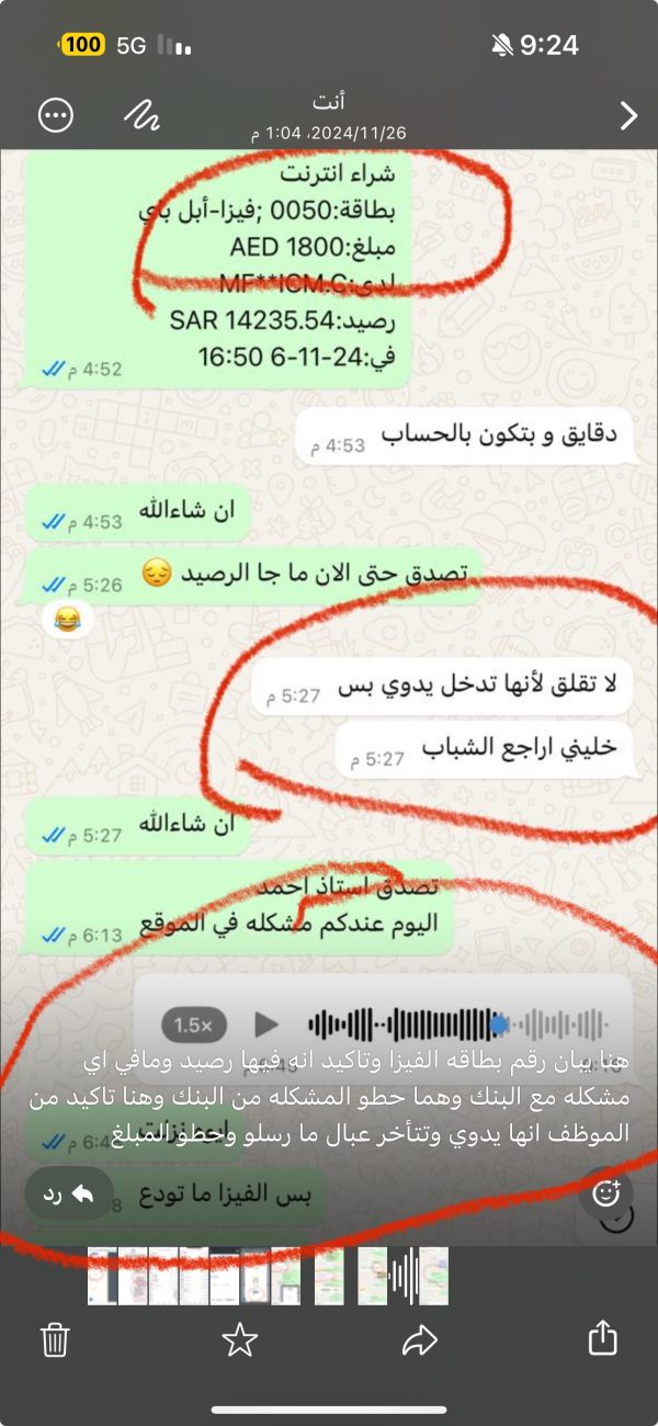 في٦/١١/٢٠٢٤ كان في حسابي حوالي ١٦ الف وكان عندي عمليه شراء للذهب وعمليات ليست كثيره وانا عارف وشايف الذهاب جالس ينزل فقلت بدعم حسابي بمبلغ 15 الاف عشان لايقفل حاولت أودع بمبلغ 3الاف على مراحل موقع الشركه فيه مشكله مع أنادايما أودع بهذي البطاقه وهيابطاقه فيز موقع شركه كان فيه شعار سيفين ونخله حدثو الموقع وماخبرو احد راسلت موظف يلي سجلت عن طريقه قلي فيه مشكله في الايداع قلي حاول تجرب بطاقه ثانيه وحاولت نفس المشكله مع اني دايماأودع بهذي البطاقه ومافيهامشكله وانا فاتح في اكسنس أودع فيها وعندي كذا تحويل موظف شركه جايساعدني اعطاني رابط ايداع وقلي جرب أودع 800 أودعت بنفس البطاقه لكن الايداع تاخر خبرته بعد نصف ساعه قلتله الايداع تاخر قلي هذا الايداع يدوي قلت كيف يدوي قال عبال ما تنحل المشكلة وتأخر الايداع اكثرمن 60 دقيقه قلتله كيف شركه كبيره ويتأخر الايداع ويدوي كمان بعدين لمن رفعت ايميل وقلتلهم انتو عندكم مشكله في الايداع وحدثتو موقعكم وما خبرتواحد بيميل ولا شي سببتو في خساره قلي الموظف هذه المشكله عندك من بطاقه والبنك نفسه قلتله كيف من البنك وكنت أودع عندكم وقبل يدوي الايداع