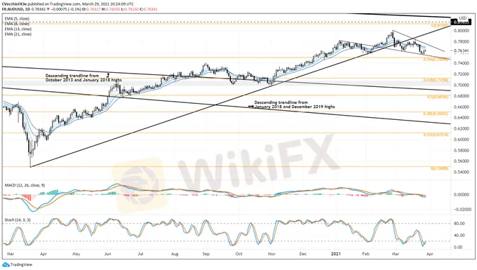 AUD/USD RATE TECHNICAL ANALYSIS: DAILY CHART (MARCH 2020 TO MARCH 2021) (CHART 1)