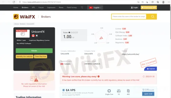 UnicornFX, also called Unicorn Global Limited, offers customers unique opportunities to get returns and profits from the forex market. Tempting enough as their claim may seem, this broker doesnt hold a legit license, which means your money is in risk under its management. It also described itself to be a legitimate forex broker who is regulated by the Investment Industry Regulatory Organization of Canada (IIROC). However, it is clueless if you try to find their registration in IIROC.Given that UnicornFX has a very low ranking of 1.0/10 on WikiFX, we advised you to avoid this broker.
