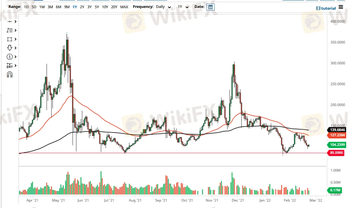 I think the best thing you can hope for is a little bit of stabilization below with $85 level, as it should give you an opportunity to perhaps consolidate and build up a little bit of an accumulation in the process. I think at this point in time crypto is either going to go sideways in general, or we are about to see a massive breakdown where we may go back into a “crypto winter”, which of course would be toxic for some of the smaller markets.