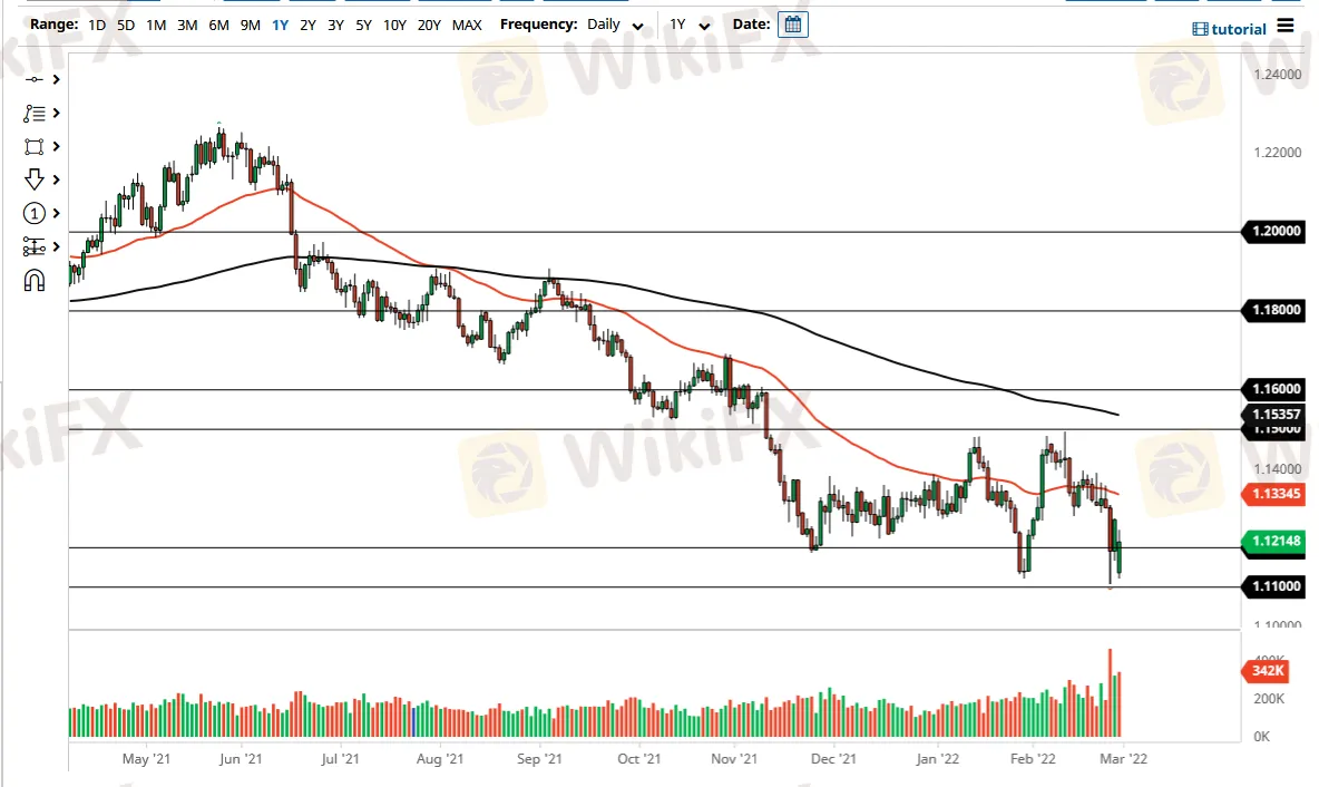 Abstract:The Euro got hammered right off the bat on Monday morning, gapping down to reach towards the 1.1121 level. However, it has since rallied to reach as high as 1.1243, before pulling back towards the 1.12 handle. The volatility is going to be a major problem with this market, as the Euro will be directly affected by the Ukraine/Russia issues. Beyond that, if Vladimir Putin decides to shut off the natural gas heading into the European Union, it will almost certainly have a major influence on the economy in a strong and negative way.