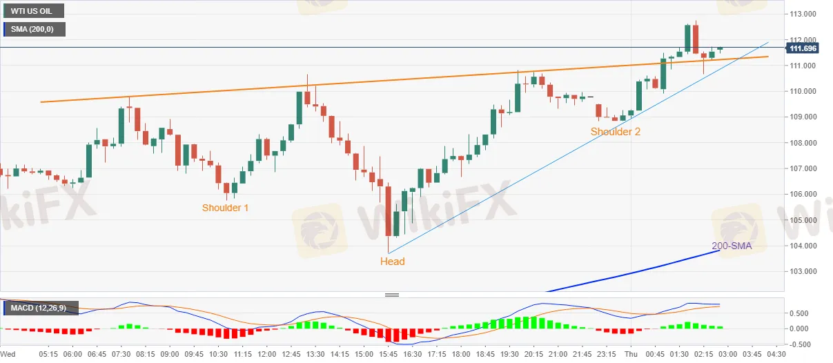 Alternatively, a downside break of the nearby resistance-turned-support line, at $111.30 by the press time, will negate the latest bullish breakout.