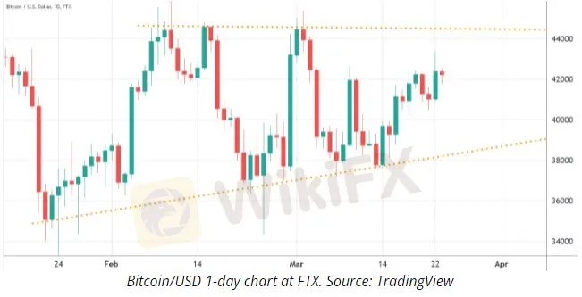 Even Bitcoin's recent rally above $42,000 took bears by surprise because only 16% of the bearish option bets for March 25 have been placed above this price level.