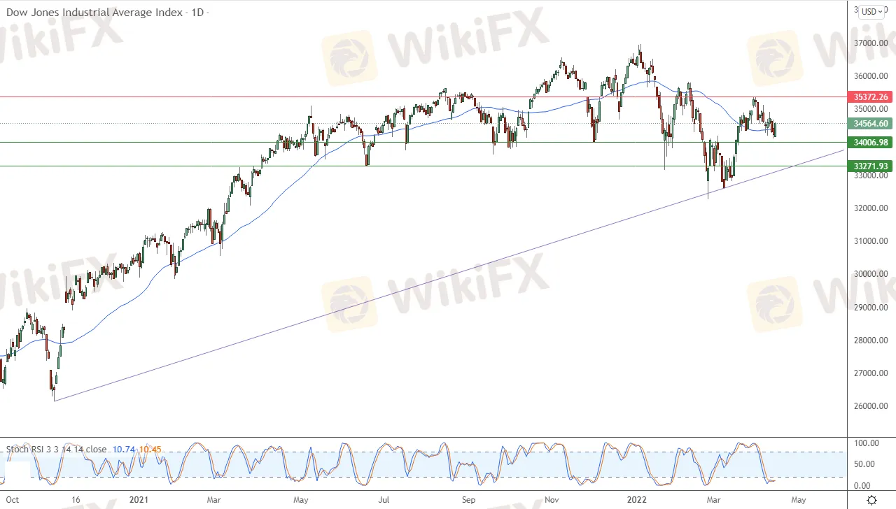 Abstract:The Dow Jones Industrial Average rose during its recent trading at the intraday levels, to achieve gains in its last sessions by 1.01%, to lose the index about 344.25 points and settle at the end of trading at the level of 34,564.60, after declining in Tuesday's trading by -0.26%.