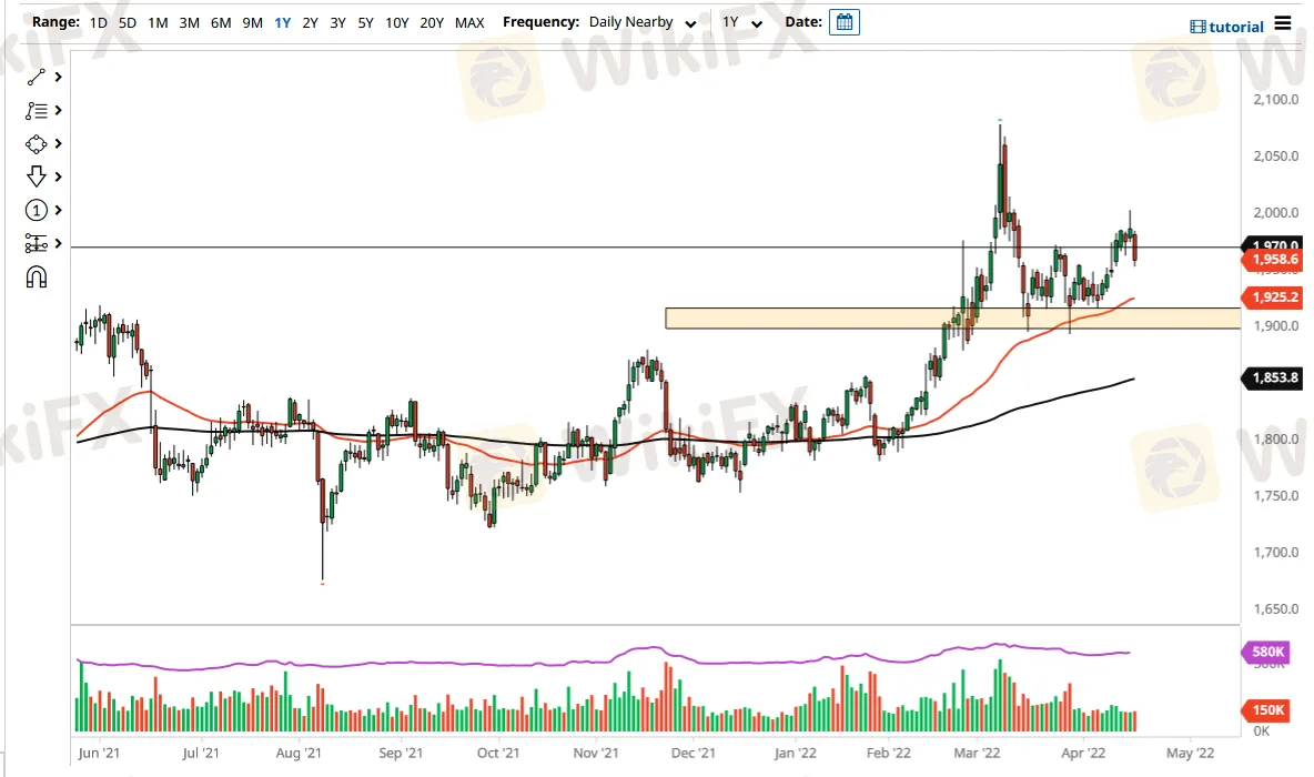 Abstract:Gold markets have fallen rather hard during the trading session on Tuesday to break down below the $1970 level. That was an area that had been significant resistance previously, and therefore it is a bit surprising that we sliced through it as easily as we did. The market still has plenty of support underneath that could come into the picture, and it is worth noting that we had previously broken out of a consolidation area.