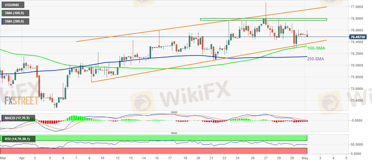 Alternatively, the 100-SMA and the 200-SMA, respectively around 76.35 and 76.15, will test the USD/INR bears before giving them control.