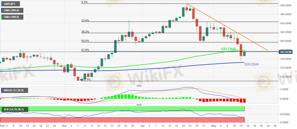 As a result, the 100-DMA level, surrounding 158.00, probes the GBP/JPY buyers, making it difficult to reverse the monthly bearish trend.