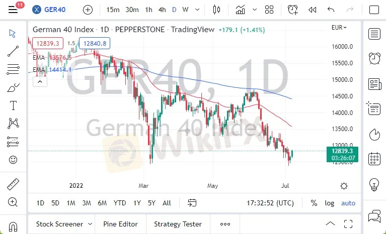 Abstract:The DAX has rallied a bit during the trading session on Thursday as we continue to see signs of life. That being said, the €13,000 level above could offer a little bit of resistance, as it was the previous support level. If we show any signs of exhaustion near the €13,000 level, then I believe that the DAX will drop rather significantly. At that point, the market is likely to test the lows again near the €12,500 level. It will break down below there, then it’s possible that the overall downtrend continues.