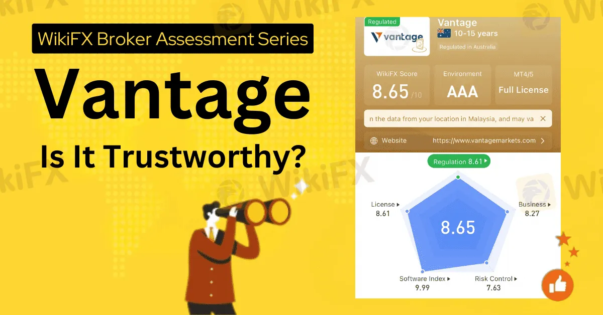WikiFX, a global forex broker regulatory platform, has assigned Vantage a WikiScore of 8.65 out of 10.