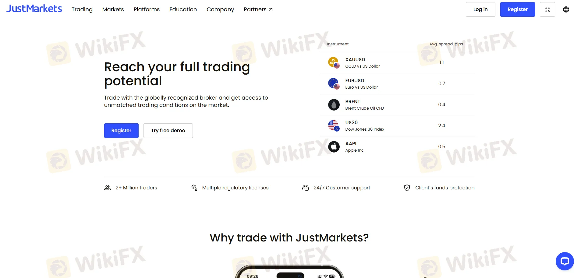 | Trading Platforms | MT4/5 (PC, Android, iPhone, WebTrader), JustMarkets trading app |