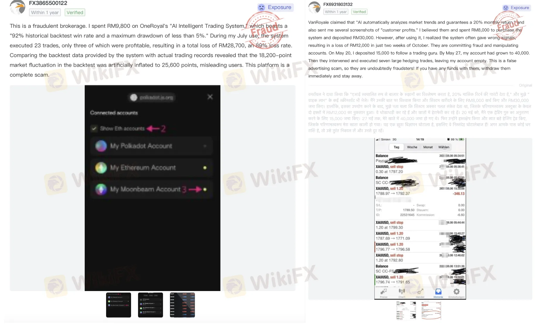 The third category of complaints attacks the integrity of OneRoyal's trading environment. Traders have accused the broker of manipulating price feeds to force liquidations.