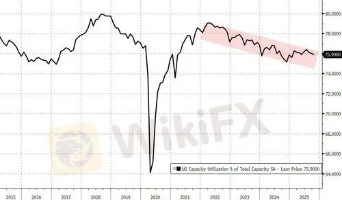 Capacity Utilization limped lower to 75.9% (from an upwardly revised 76.0%), but remains off the Nov 2024 lows...