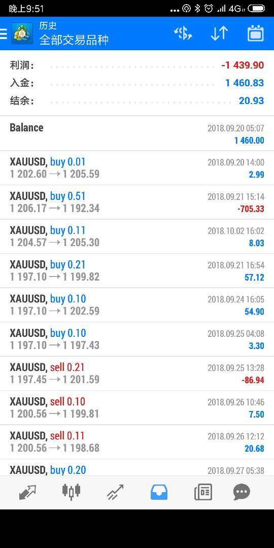 黑平台 滑点严重 开始就大亏 后来一路亏完