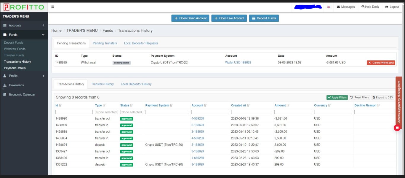 I was creating a withdrawal request with PROFITTO over 4 months ago and they still didn`t approve it. It's been over 4 months since I placed my withdrawal and they keep telling me that my withdrawal is under checking. They don`t even want to give my deposit back. So far all I can say is that the broker is not accepting withdrawals. Avoid PROFITTO if you don`t want to lose your money!
