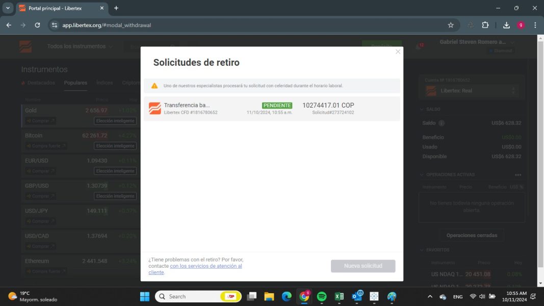 Sin procesamiento de retiro