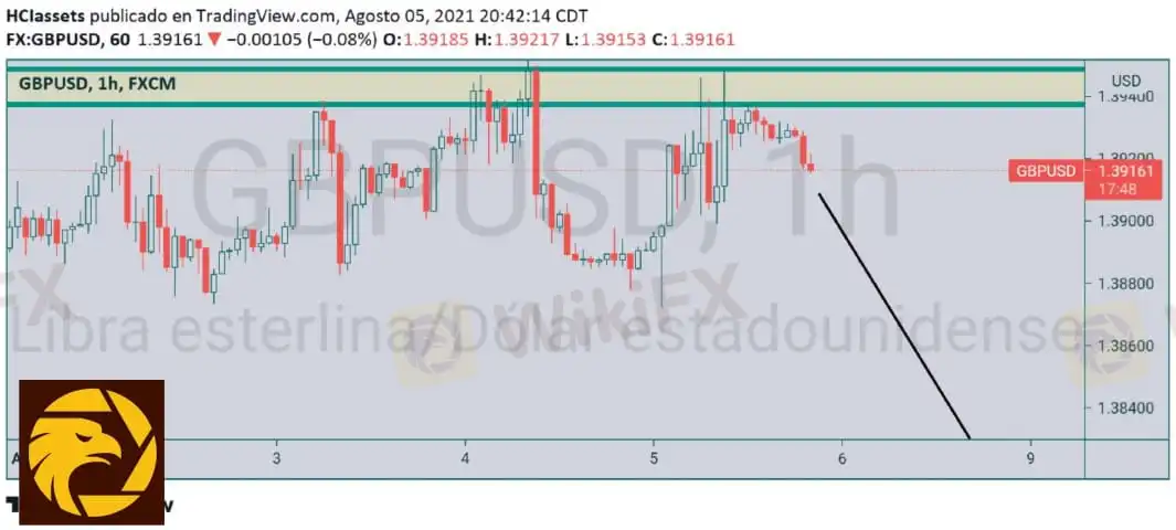 GBPUSD el precio en tendencia lateral hace triple techo en técnico además mañana hay NFP y se prevé fortalecimiento del dólar así que podemos buscar ventas a partir del precio 1.39000