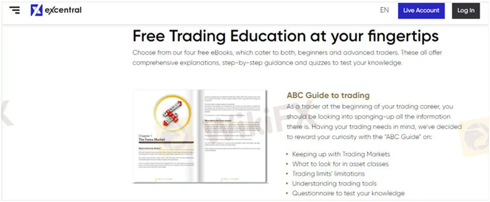 eXcentral ofrece una amplia gama de recursos educativos en su plataforma. Desde videos hasta guías y tutoriales, e incluso seminarios web de comercio en vivo, todo lo que necesita para operar de manera efectiva se puede encontrar en el sitio eXcentral. Además, el corredor proporciona recursos comerciales adecuados tanto para operadores principiantes como para expertos. El corredor también ofrece una selección de videos diseñados por MTE Media, que en sí es un nombre líder en el campo de la educación e investigación financieras.