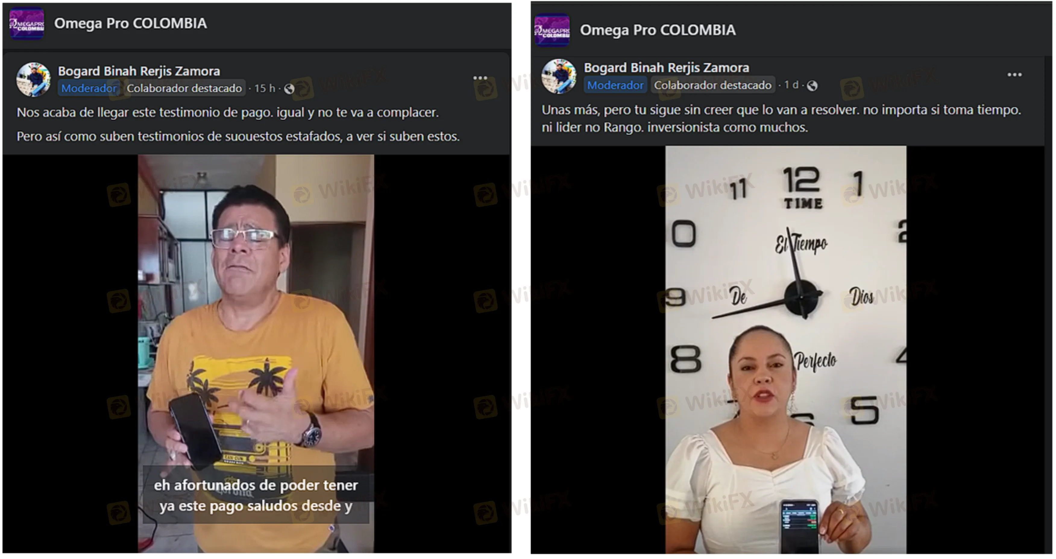 En Facebook y grupos de Telegram y WhatsApp relacionados con OmegaPro se han estado publicando imágenes y videos sobre evidencias de pagos a personas clientes de OmegaPro, mostrando los correos de Broker Group y los saldos en las billeteras Binance consignados por el bróker.