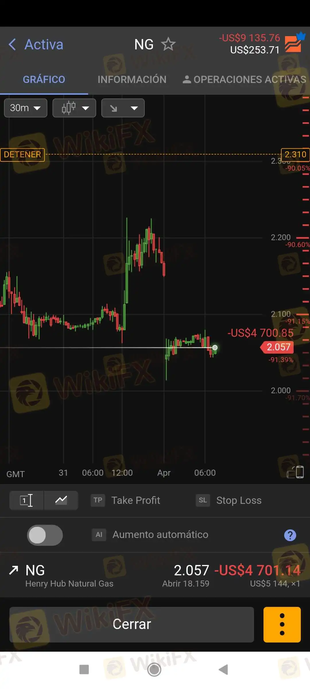 “Hola mis operaciones fueron manipuladas para generar una gran pérdida, ubicaron una stop up en un precio por encima del actual lo cual causará que mis operaciones lleguen a una pérdida total si toca ese precio, incluso siendo una operación en compra, tener cuidado con este bróker”