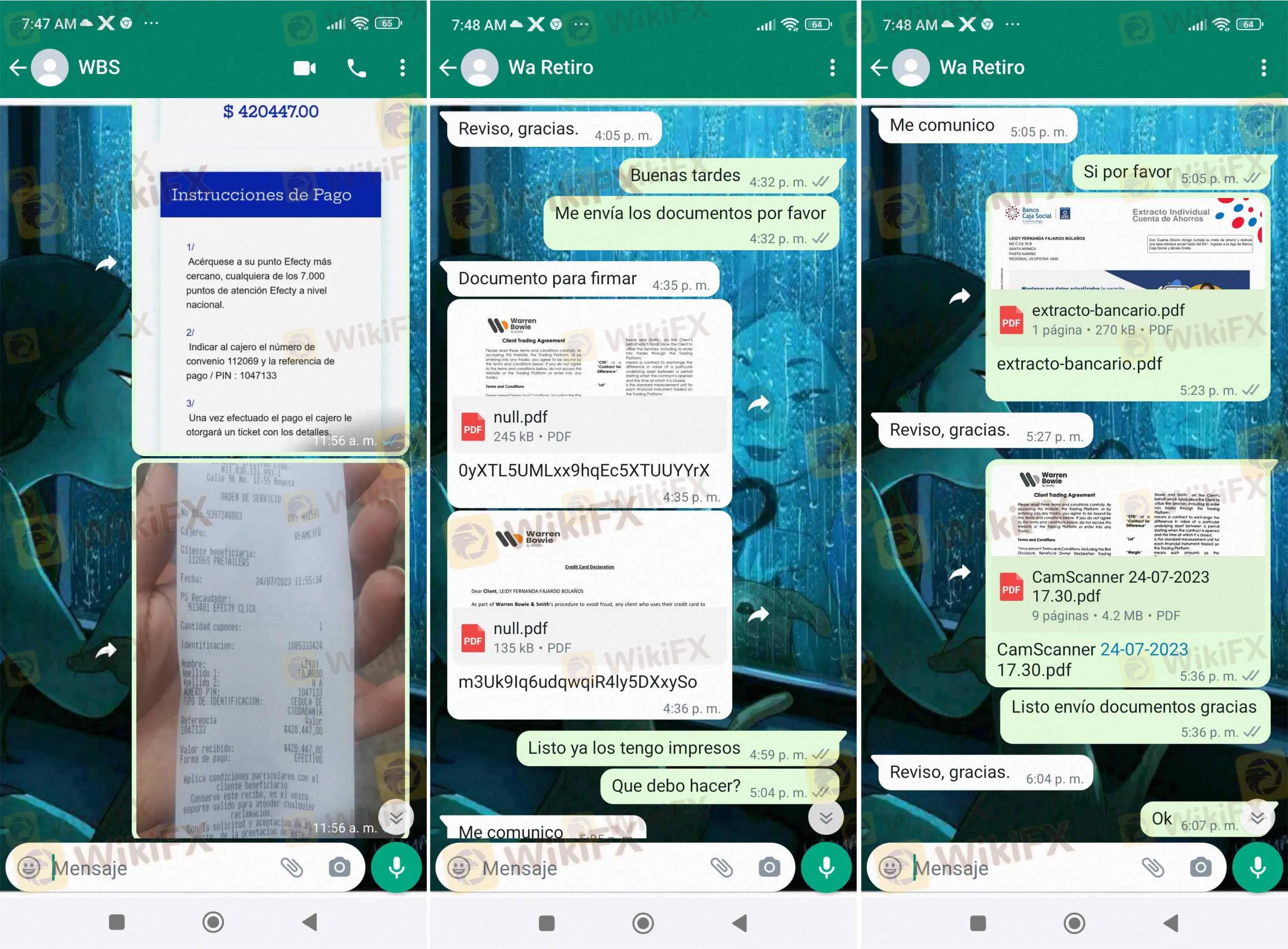 A pesar de proporcionar la información requerida, el cliente aún no ha podido retirar sus fondos. Cada intento de comunicarse con los asesores de “Warren Bowie & Smith” ha sido infructuoso, ya que ninguna de sus llamadas ha sido respondida, lo que ha aumentado sus sospechas de que ha sido víctima de una estafa.