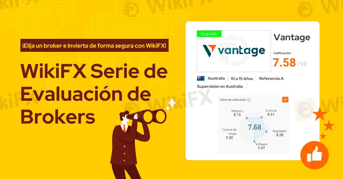 La calificación obtenida por Vantage en WikiFX es de 7.58 / 10.00, ya que, aunque tiene muchísima experiencia en el mercado y excelentes características comerciales, el alto número de exposiciones hacen que su calificación baje un poco.