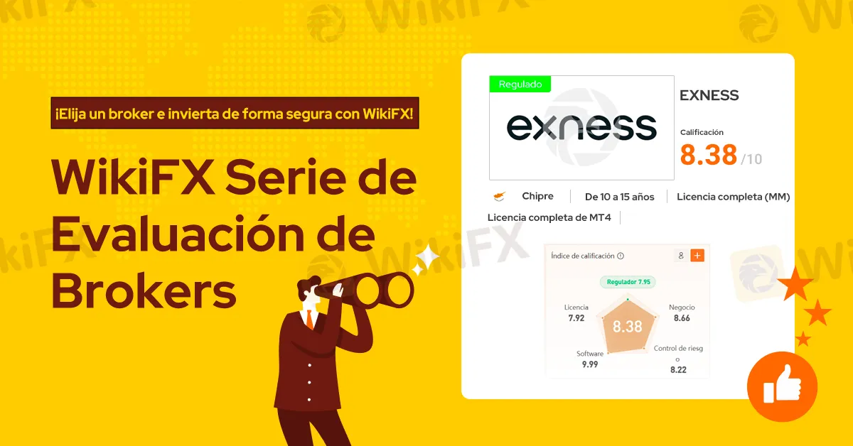La calificación otorgada por WikiFX a Exness es de 8.38 / 10.00, una alta calificación justificada con los índices de esteh broker: Índice regulador de 7.95, Índice de control de riesgo de 8.22, Índice de licencia de 7.92, Índice de negocio de 8.66 e índice de software de 9.99, estas altas calificaciones convierten a Exness en un broker confiable.
