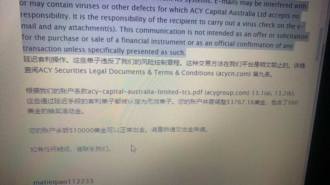 acy也算是老平台了 盈利不给取款 说什么市场深度不够 报价差异 我的交易都在最活跃的时间做的 盈利3767美金 acy 不给取款 直接扣掉盈利 这简直就是强盗行为!