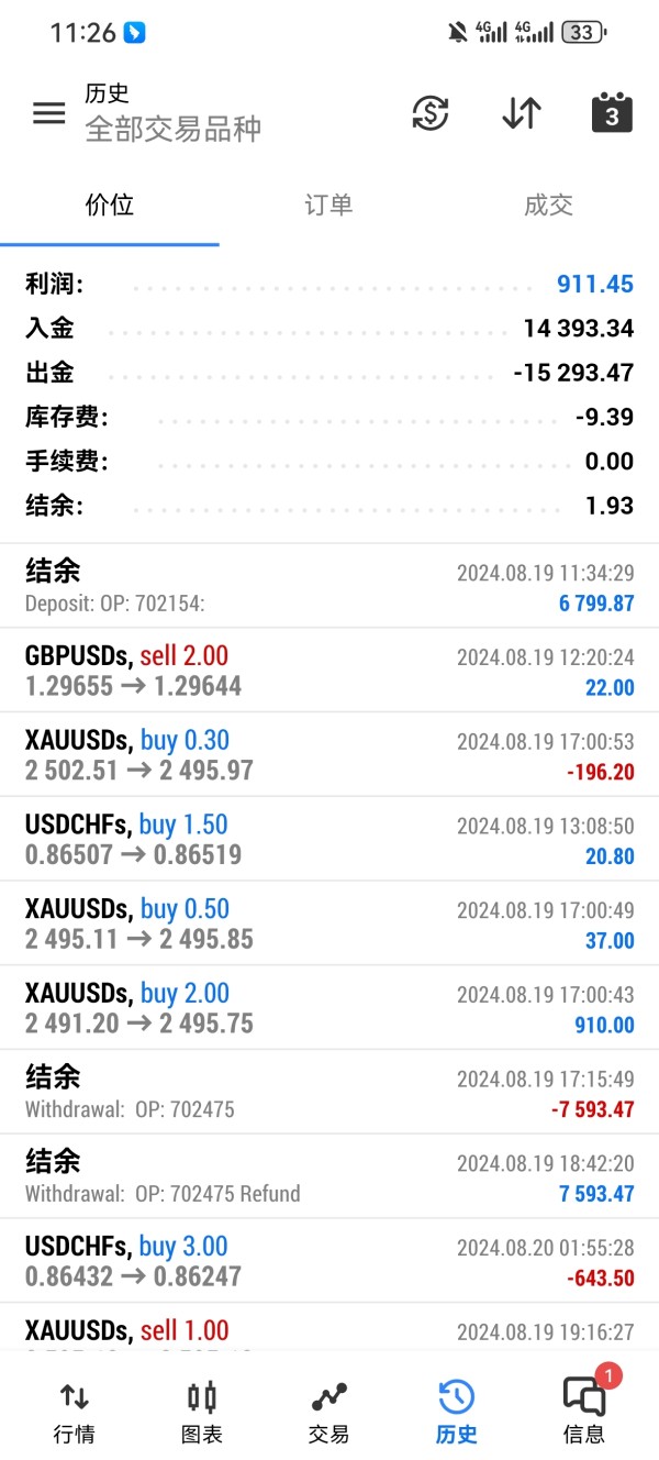 NCE平台无法出金,客服一直让等待。本人在8月19日入金6800美金,交易盈利911.45美金。提交出金以后收到处理提款并提供了详细信息,后来平台要求提供手持身份证,视频。文客服按照要求通过了人脸认证,视频后一直未能收到出金处理,发送邮件入石沉大海。联系官方客服,客服表示需要通过邮件沟通。
