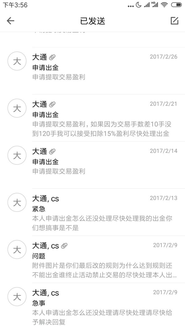 申请2016年底你们举办的1000美金教育金提取交易盈利,http://m.sohu.com/a/165093388_120869,我是刚看到,为什么没人和我联系给我发邮件出金,当时那客服也是说要100手才能出金,后来又改了规则说从12月1日开始算做满88手就可以出金,我在2016年1月16日就做够申请出金当时等了一礼拜没人回复也没交易,到你们放假了我又继续交易110手直到2017年2月1日你们突然停止比赛禁止交易了,事先无任何提示公告,我账户还没交易到3个月就关闭,如果不是上次申请出金耽误几天没交易到2月1日不用说100手120手也够了,因为你们每天限制平仓手数2.5手有很多次应该平仓缺怕超了手数等待隔天本来赚的变成赔的单子赔钱的单子还不愿平仓致使等待盈利才平致使我做了2个多月才做110手,账户还没到3个月就关闭交易,频繁修改规则,之前说好88手然后又改100手又改120手又改88手,哪有这样欺骗消费者,最后平台规则写的就是88手,你们看看附件截图,你们是不是以为是奖金不是入金就没事,请尽快处理出金 现在还没回复 http://m.qdxin.cn/detail/164105.html