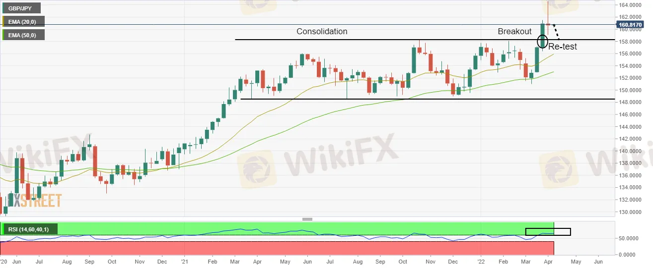 Ang GBP/JPY ay nagtala ng taunang mataas sa 164.64 pagkatapos ng isang siyam na buwang breakout ng consolidation.