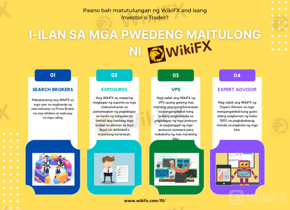 Ang WikiFX ay higit pa sa isang search engine kung saan maaaring maghanap ang mga mangangalakal ng mga update o balita sa status ng pera. Nag-aalok ang WikiFX ng malawak na hanay ng mga serbisyo sa mga mamimili nito. Maaaring magbigay ang WikiFX ng eksaktong estado ng broker at ang mga balita nito, parehong pabor at masama, kasama ang mga paglalantad at mga forum, na isa sa pinakamahalagang pamantayan. Sinusuri ng WikiFX ang mga broker batay sa input mula sa kanilang mga regulator, tulad ng kung paano pinangangasiwaan ng isang partikular na broker ang mga namumuhunan nito nang walang reklamo. Ang lahat ng mga alalahanin sa mamumuhunan ay iuulat at tatasahin ng ahensya ng regulasyon upang matukoy kung ang reklamo ay lehitimo.