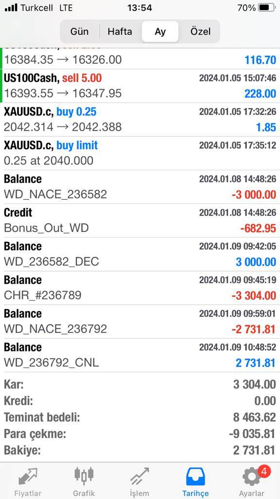 I am the owner of account number 125558 at Squared Financial. I invested 2731.81 dollars in the company on 01.03.2024. Then I started trading and my trading style was quite normal. By the end of my third day of trading, I had made a total profit of $3304. On 08.01.2024, I requested a withdrawal of 3000 dollars. On 09.01.2024, a total of 3304 USD profit was deleted from my account due to trading abuse and I was notified that I had to withdraw my principal money. I absolutely deny this. Trading in my account is completely consistent with normal market movements. These are attached with proof. Please help me. I have a complaint about this company!!